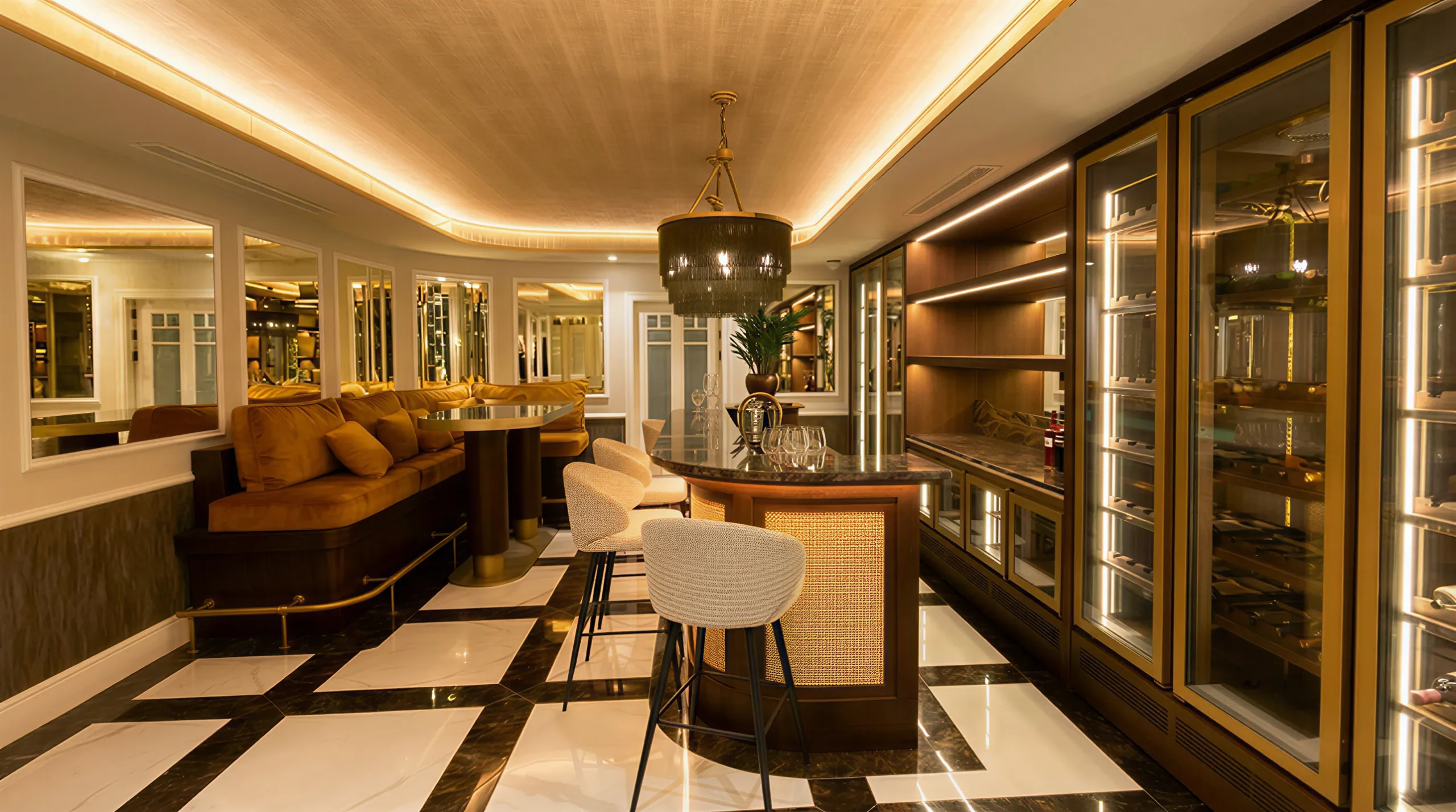 Installation of 5 independent ducted AC units with AIRZONE linear grilles. The entire system was hidden within bespoke lighting coves to maintain aesthetic purity while managing the complex climate demands of a spa and cinema.