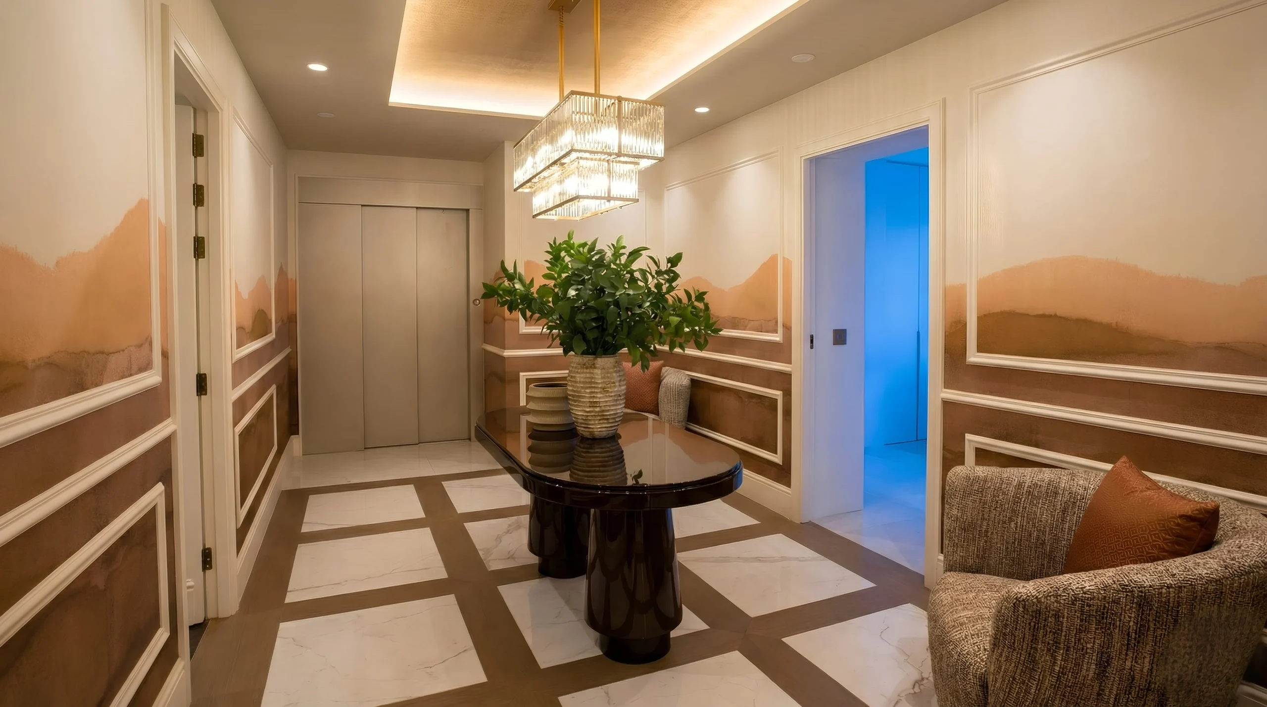 Execution of complex finishes that require millimeter precision in handling and installation. The design by Pedro Peña demanded flawless transitions between materials.